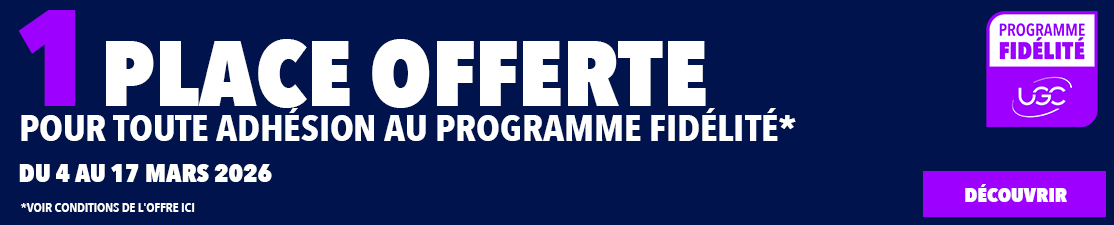 Le responsable de traitement est UGC CINÉ CITÉ – SAS au capital de 112 404 145,92 euros – 24 avenue Charles de Gaulle – 92200 Neuilly-sur-Seine – RCS DE NANTERRE 347.806.002. Conformément à la loi n°78-17 du 6 janvier 1978 « Informatique et Libertés », modifiée en 2004, vous bénéficiez d'un droit d'accès, de rectification, de suppression, d'opposition, de limitation, de portabilité des données vous concernant, ainsi que de la possibilité de fournir des directives quant au sort des données après le décès en adressant votre demande par courrier à UGC Ciné Cité, Service Client, 24 avenue Charles de Gaulle, 92200 Neuilly-sur-Seine ou via le formulaire contact, rubrique « données personnelles ». Votre adresse email sera conservée pour une durée de 48h à compter de votre demande de désabonnement aux « Bons plans UGC ». En validant, vous consentez à l’utilisation de votre adresse email conformément à la présente politique de confidentialité.
