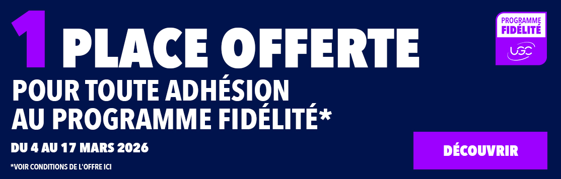 Votre adresse email sera utilisée pour vous transmettre les emails « Bons plans UGC » et à des fins statistiques, et ce uniquement par les services internes d'UGC CINÉ CITÉ et les sociétés en lien avec UGC CINÉ CITÉ pour la réalisation de la prestation. La communication de votre adresse email est facultative pour poursuivre votre navigation. Vous pouvez vous désinscrire, à tout moment, en cliquant sur le lien de désabonnement de votre email.